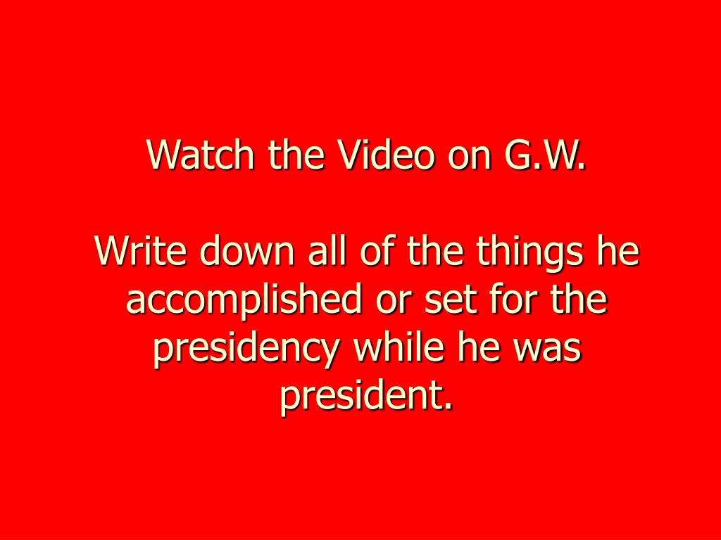 Watch the Video on G.W. Write down all of the things he accomplished or set for the presidency while he was president.