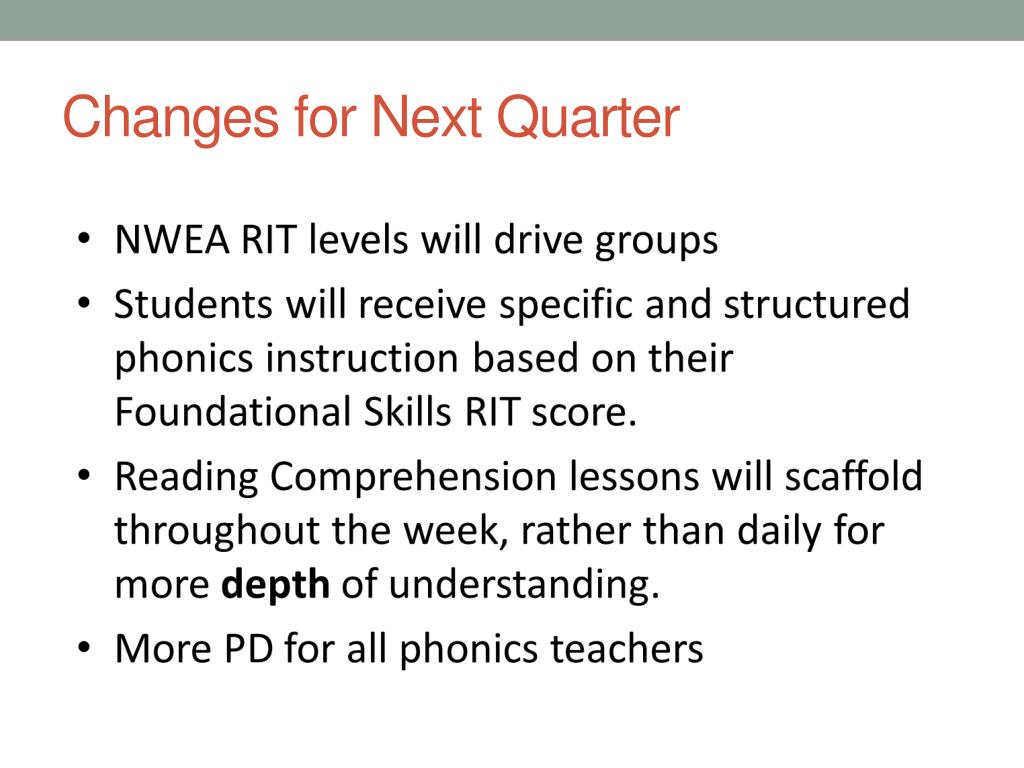Guided Study • A strong focus on key elements of Reading Literacy: * Fluency * Word Work * Comprehension * Eyes on Text Students grouped by reading level ability and monitored in the four areas for growth. Students are regrouped quarterly based on demonstrated proficiency.