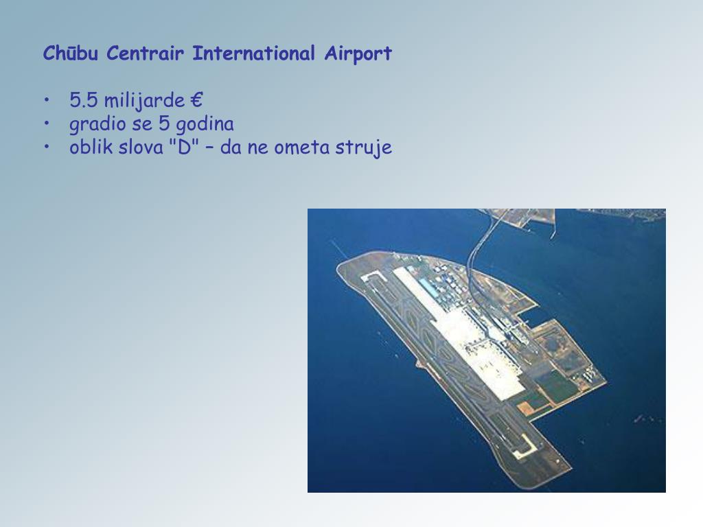 Chūbu Centrair International Airport • 5.5 milijarde € • gradio se 5 godina • oblik slova "D" – da ne ometa struje