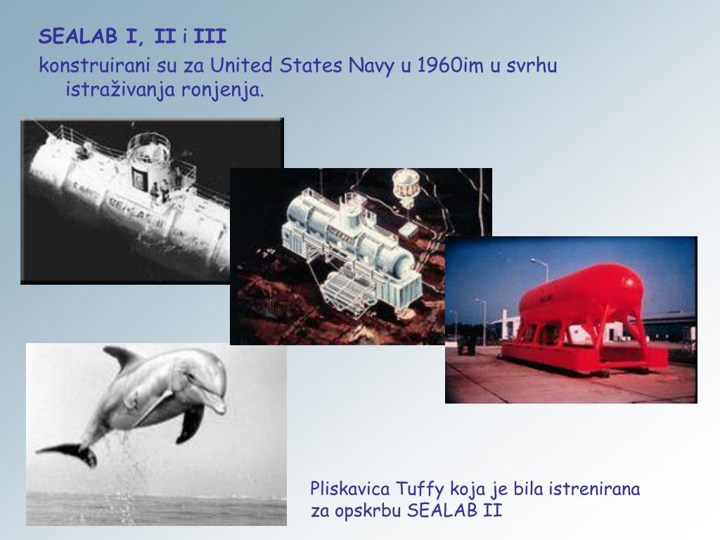 SEALAB I, II i III konstruirani su za United States Navy u 1960im u svrhu istraživanja ronjenja. Pliskavica Tuffy koja je bila istrenirana za opskrbu SEALAB II