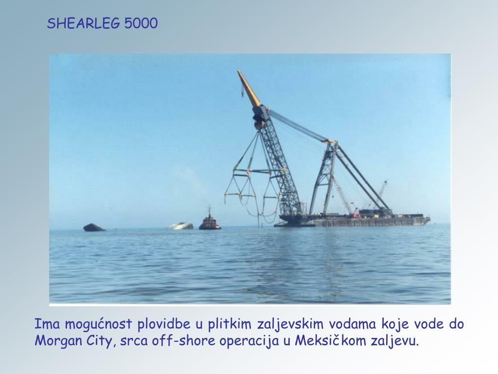 SHEARLEG 5000 Ima mogućnost plovidbe u plitkim zaljevskim vodama koje vode do Morgan City, srca off-shore operacija u Meksičkom zaljevu.