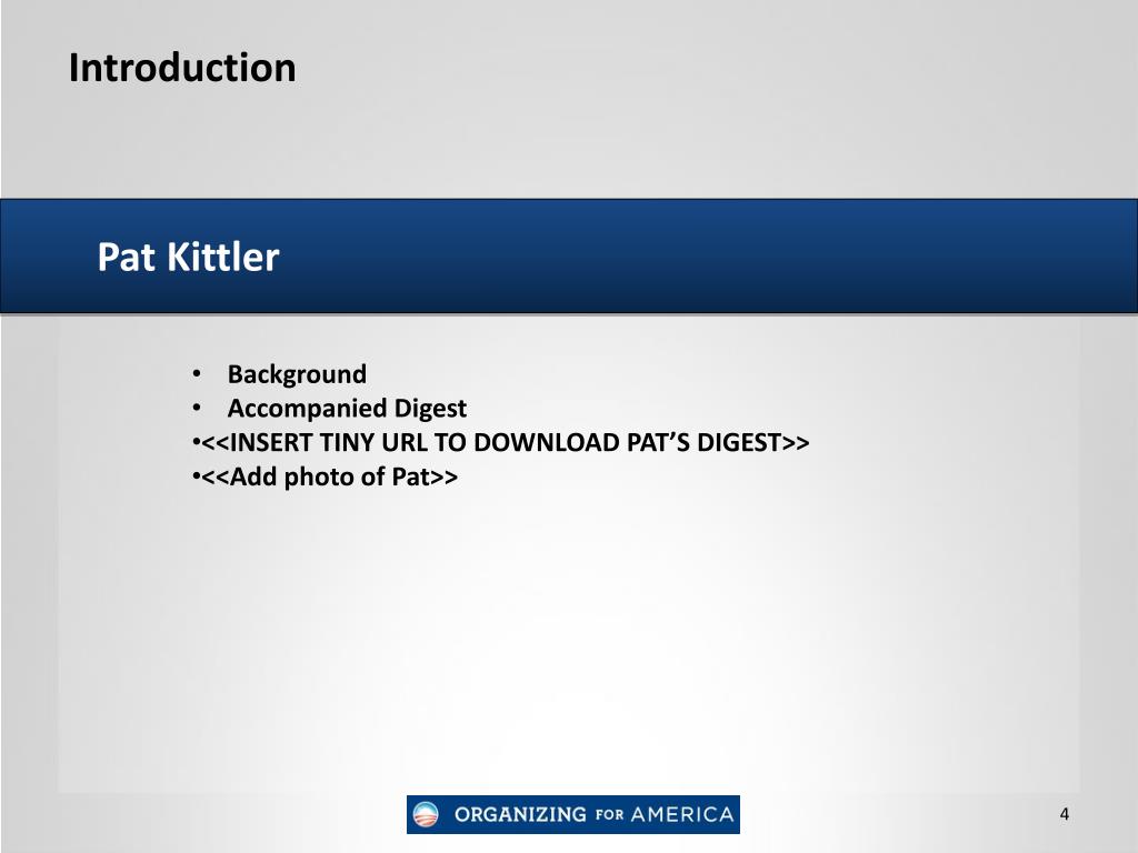 Introduction Pat Kittler • Background • Accompanied Digest • <<INSERT TINY URL TO DOWNLOAD PAT’S DIGEST>> • <<Add photo of Pat>>
