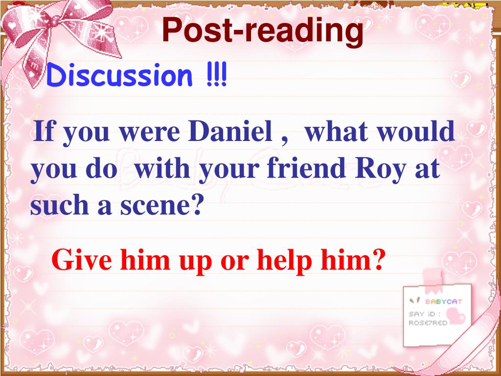 Post-reading Discussion !!! If you were Daniel , what would you do with your friend Roy at such a scene? Give him up or help him?