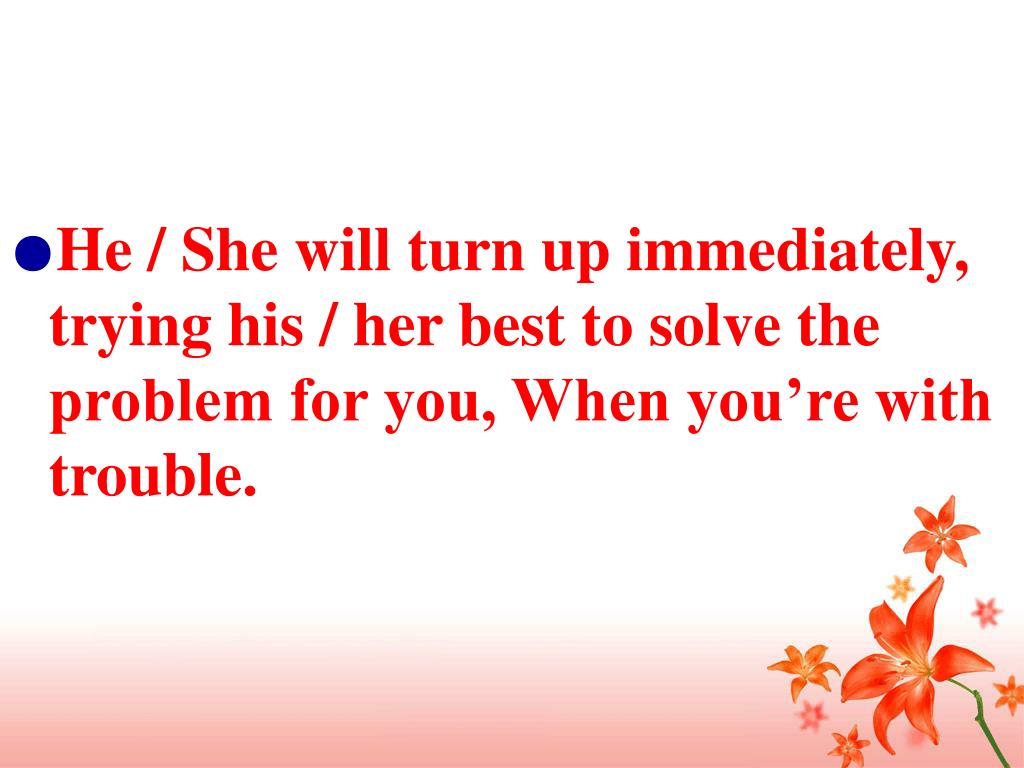 ●He / She will turn up immediately, trying his / her best to solve the problem for you, When you’re with trouble.