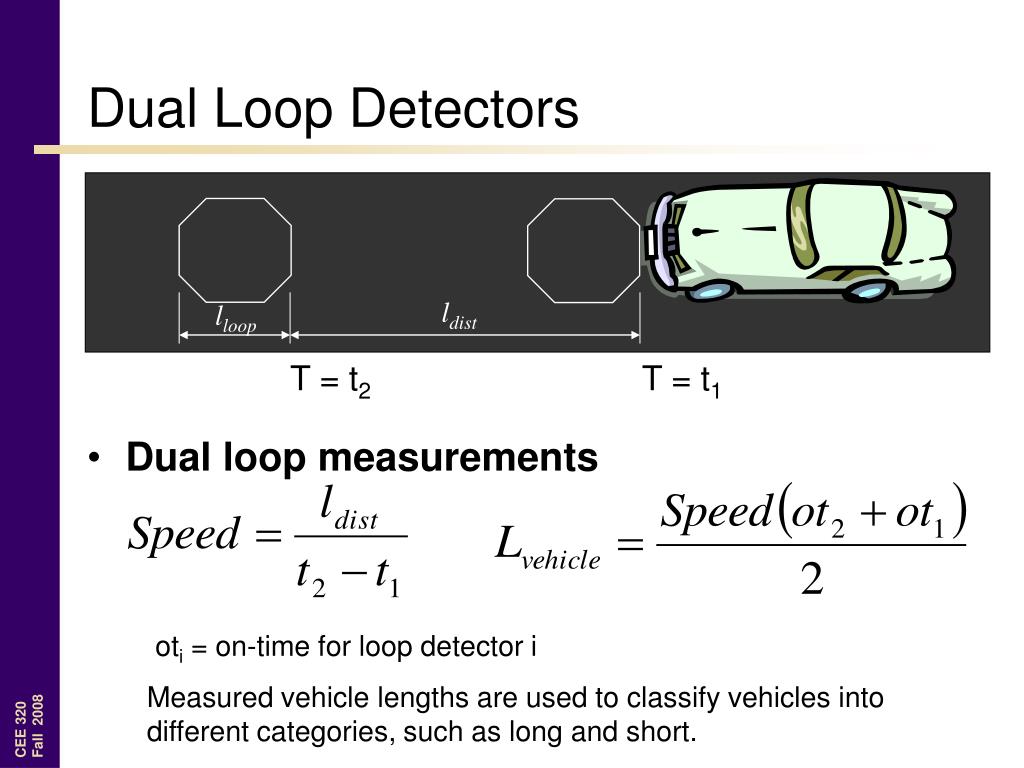 Dual Loop Detector • Formed by two consecutive single loop detectors placed a short distance apart ldist lloop