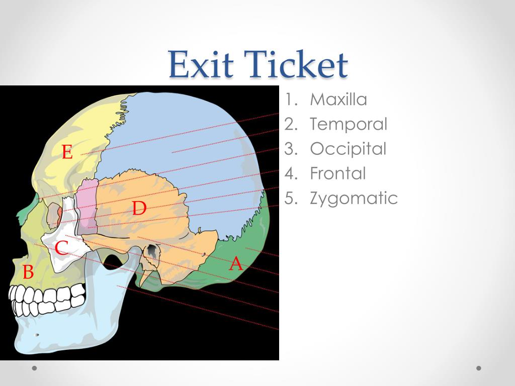 Exit Ticket • Maxilla • Temporal • Occipital • Frontal • Zygomatic E D C A B