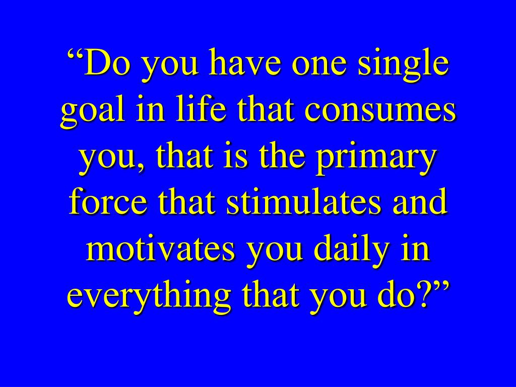 “Do you have one single goal in life that consumes you, that is the primary force that stimulates and motivates you daily in everything that you do?”