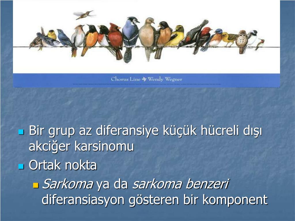 Bir grup az diferansiye küçük hücreli dışı akciğer karsinomu • Ortak nokta • Sarkoma ya da sarkoma benzeri diferansiasyon gösteren bir komponent
