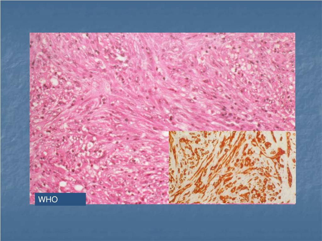Karsinosarkoma • Lezyon içerisinde sarkoma kısmı daha geniş yer kaplar. • Karsinoma komponentini aramak • Sarkoma kısmı geniş alanlarda sadece indifferansiye ‘iğsi’ hücrelerden oluşabilir. • Karsinosarkoma tanısı için küçük alanlarda differansiye sarkomatöz elemanların aranması
