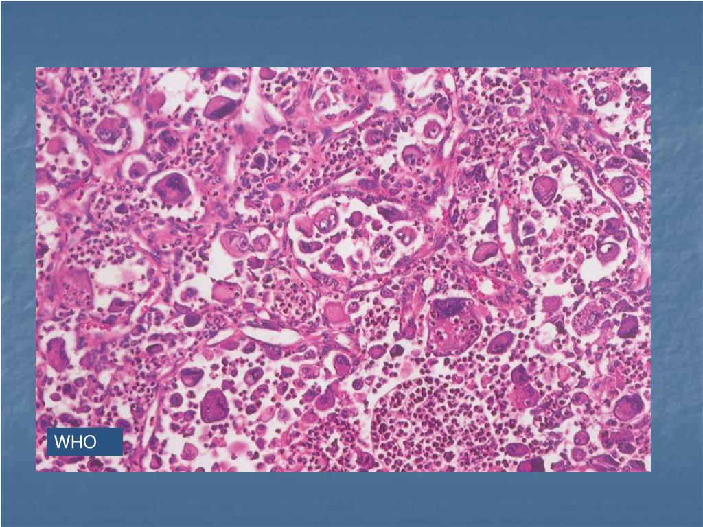 Dev Hücreli Karsinoma • Pleomorfik mono/multinükleer dev hücrelerinden oluşan karsinoma • Büyük, multilober, diskohesiv hücreler • Başka bir patern yok