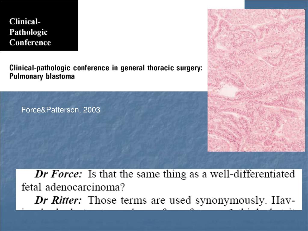 Pulmoner blastoma Pleuropulmoner blastoma Akciğerde “blastoma” Monofazik pulmoner blastoma: Fetal adenokarsinoma: İyi diferansiye fetal adenokarsinoma