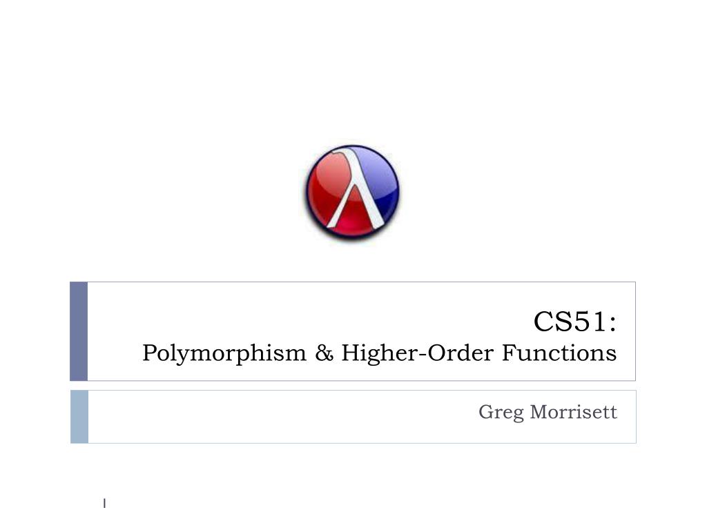 CS51: Polymorphism & Higher-Order Functions Greg Morrisett
