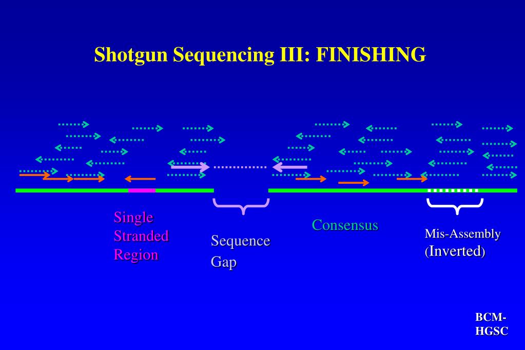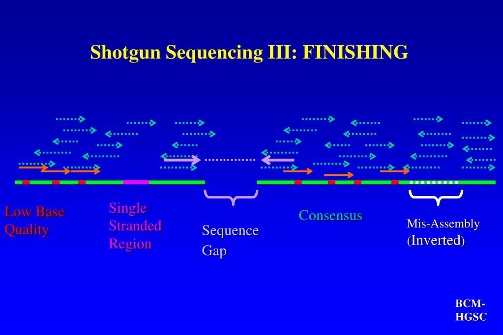 Single Stranded Region Low Base Quality Mis-Assembly (Inverted) Sequence Gap Shotgun Sequencing III: FINISHING Consensus BCM- HGSC