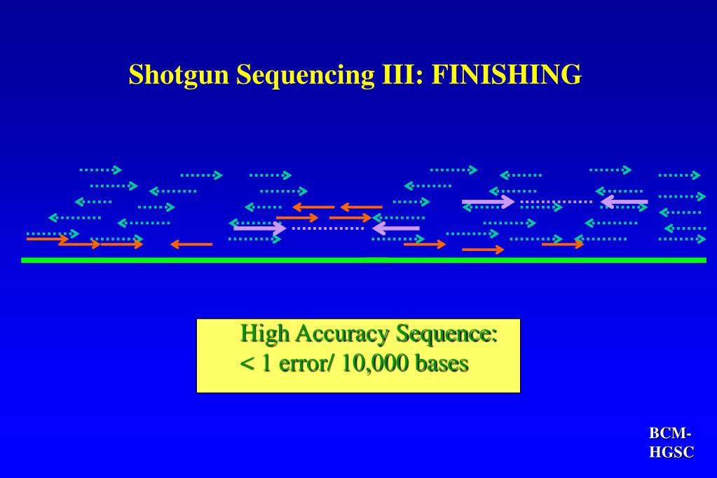 High Accuracy Sequence: < 1 error/ 10,000 bases Shotgun Sequencing III: FINISHING BCM- HGSC