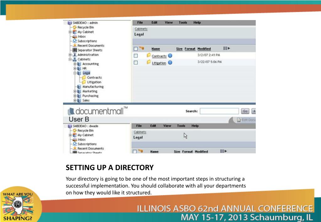 SETTING UP A DIRECTORY Your directory is going to be one of the most important steps in structuring a successful implementation. You should collaborate with all your departments on how they would like it structured.