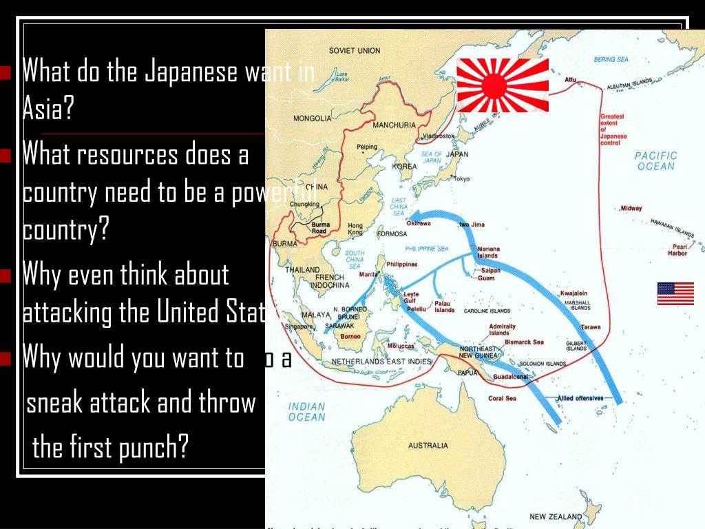 What do the Japanese want in Asia? • What resources does a country need to be a powerful country? • Why even think about attacking the United States? • Why would you want to do a sneak attack and throw the first punch?