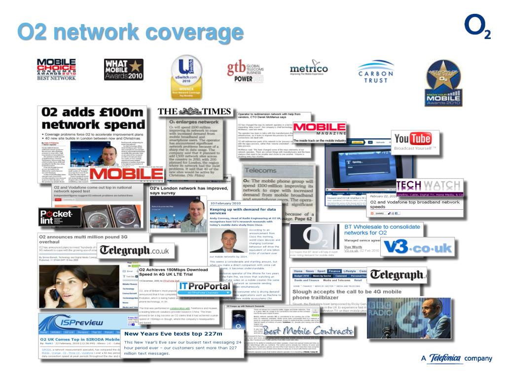 O2UK Radio Network Evolution 2008-2015 2009: 1st UK and TEF Operator to Industrialise 6 sector sites for 3G 2009: 1st UK and TEF Operator to Industrialise Microcell for 3G 2009: 1st UK and TEF Operator to launch LTE2600 trial network 2010: 1st UK and TEF Operator to launch UMTS900 trial network 2010: 1st UK UK and TEF Operator to make LTE800 call 2011: 1st UK UK and TEF Operator to commercially launch UMTS900 service 2011 Plans: Wi-Fi, Femto, HSPA+(21&42Mbps), LTE2600 London trial, Metrocells