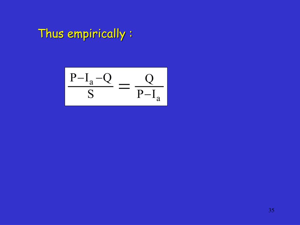 It was also found that in many situations Ia was approximately equal to 0.2S. This has been used in the preparation of graphs and tables in most text books. (If other relationships were used in the following equations, the graphs and the tables in the handouts would need to be recalculated.) If Ia = 0.2 S, the previous equation becomes :-