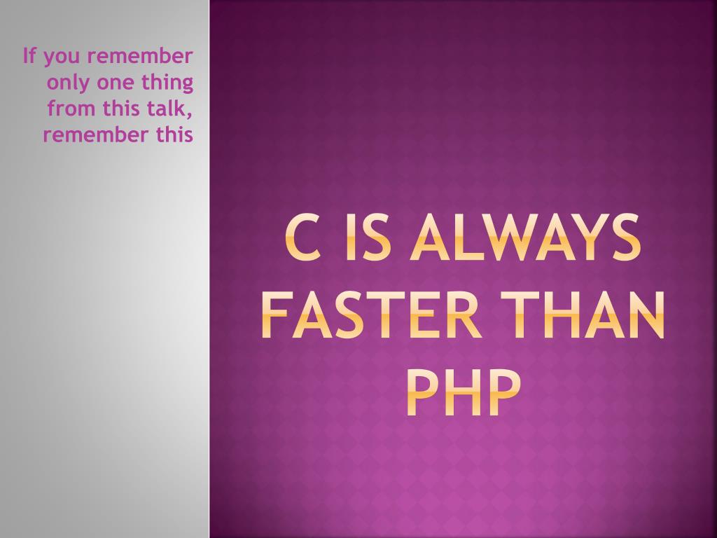 C is always faster than PHP If you remember only one thing from this talk, remember this
