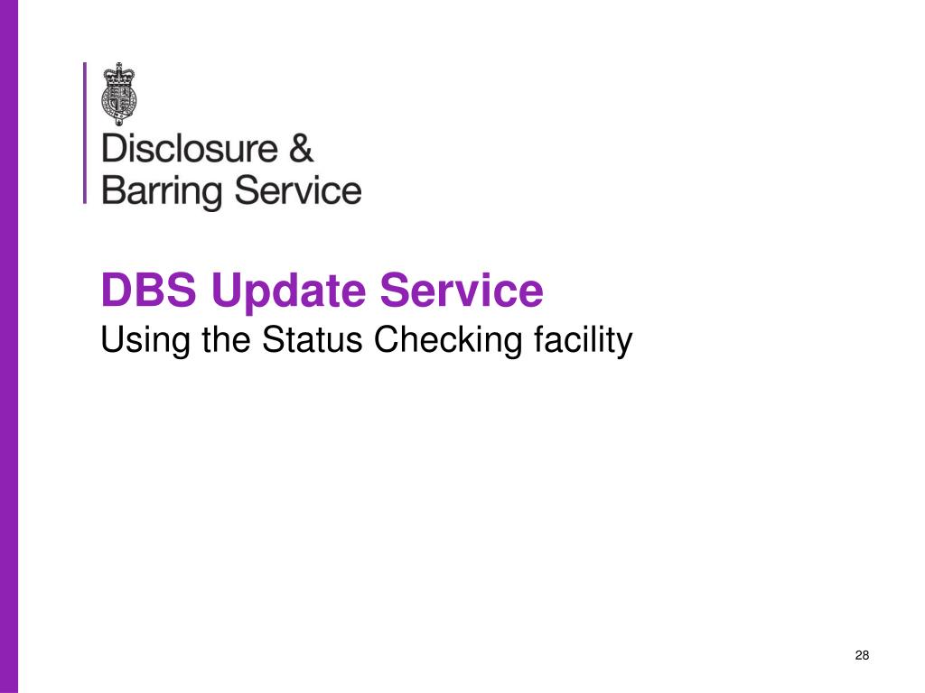 Using the Status Checking facility With the applicant’s permission, you can use their current DBS Certificate and carry out a free, online check to see if any new information has come to light since its issue.