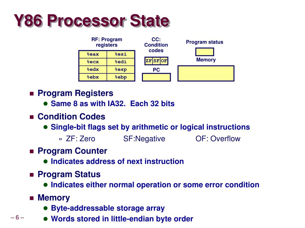 Chapter 4 Processor Architecture Y86 Instruction Set Architecture Instructor: Dr. Hyunyoung Lee Texas A&M University • Based on slides provided by Randal E. Bryant, CMU