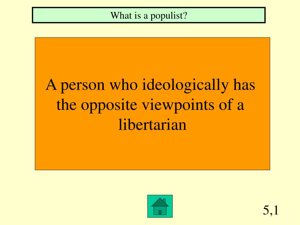 5,1 What is a populist? A person who ideologically has the opposite viewpoints of a libertarian