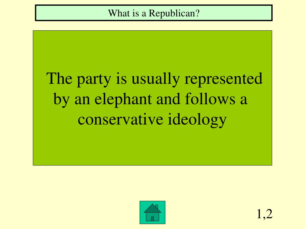 1,2 What is a Republican? The party is usually represented by an elephant and follows a conservative ideology