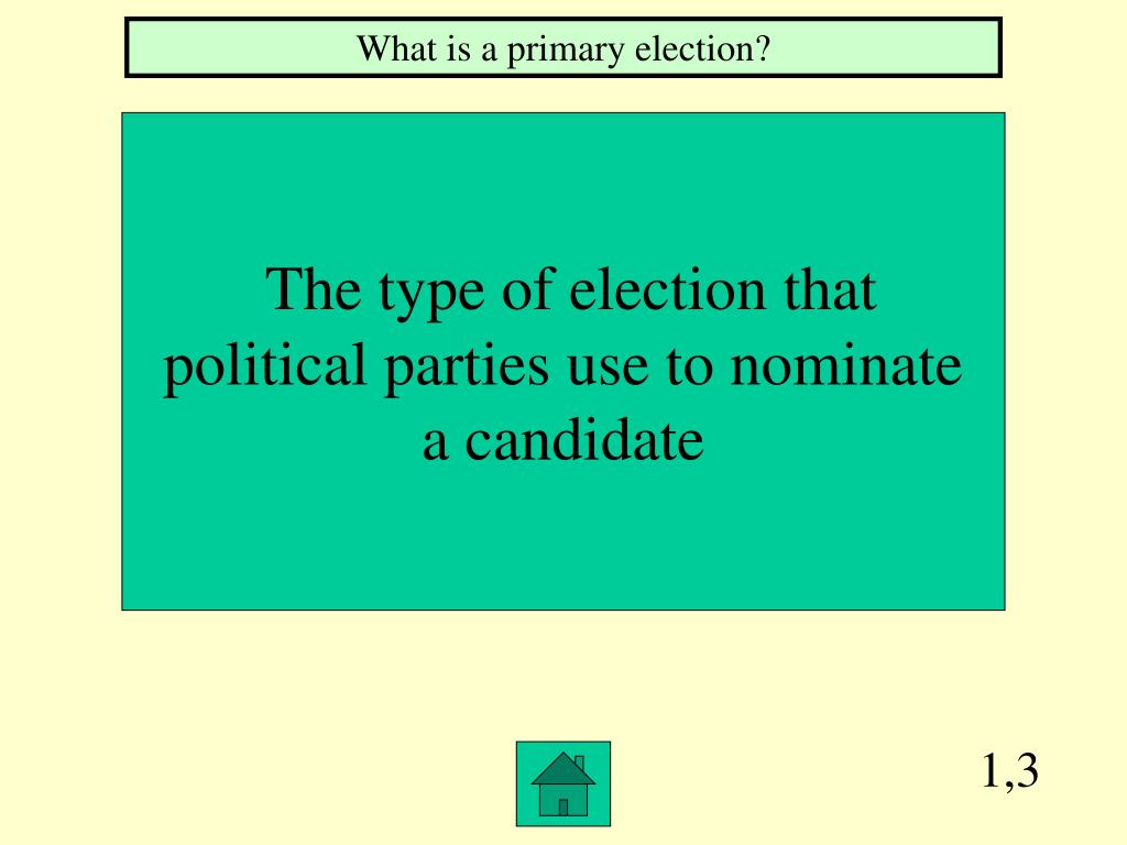1,3 What is a primary election? The type of election that political parties use to nominate a candidate