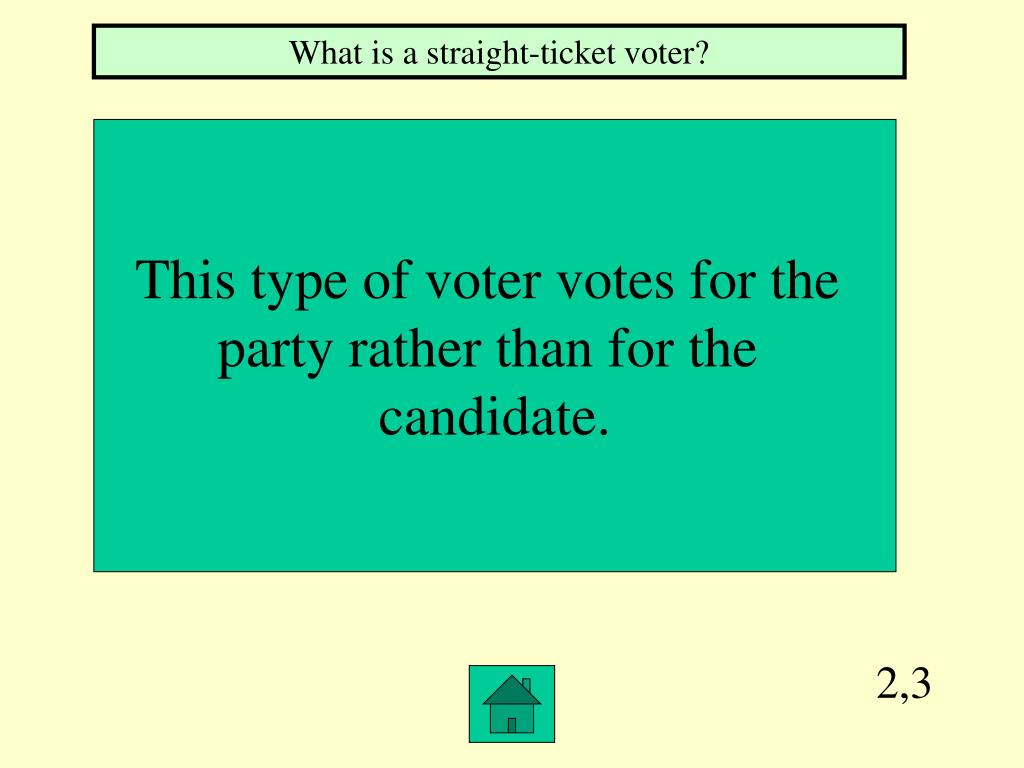 2,3 What is a straight-ticket voter? This type of voter votes for the party rather than for the candidate.