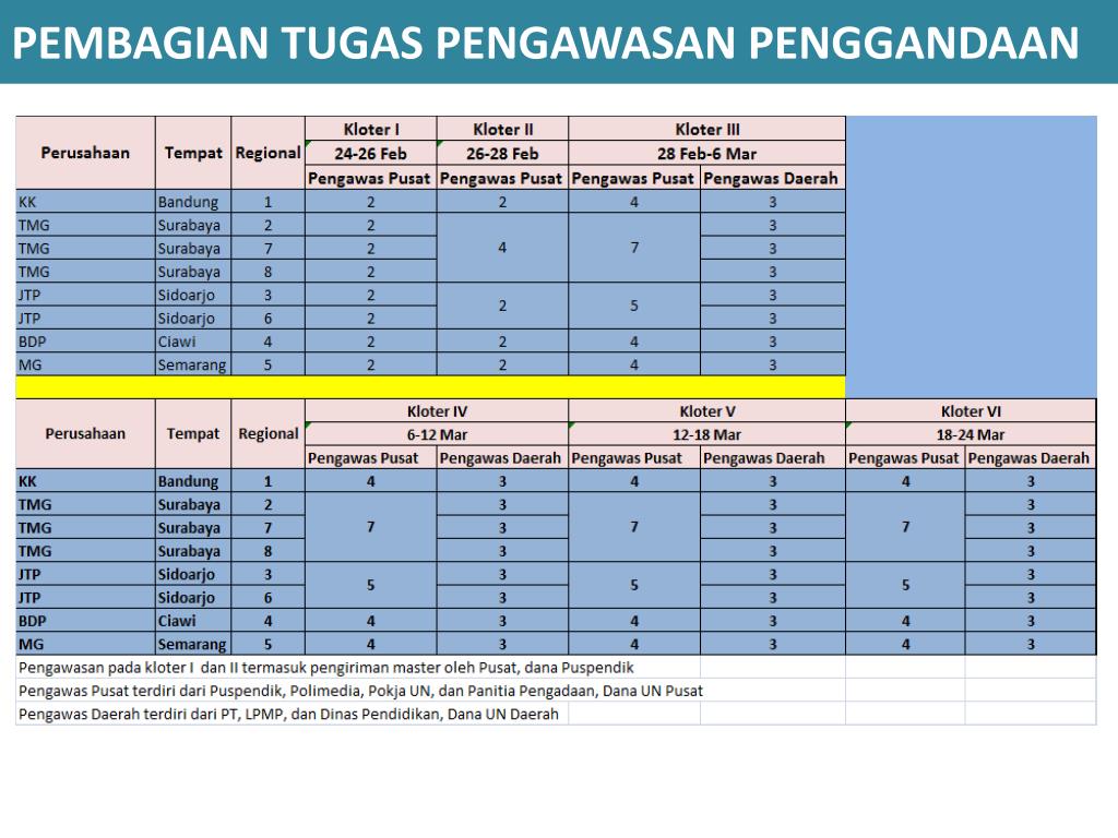 Pengawassatuanpendidikanmengawasiperjalanan LJUN daripelaksana UN ke rayon, dandari rayon tempatpemindaian di perguruantingginegeri oleh PT Mitra kab/kota. • Ada beritaacarawaktuberangkatdarisatuanpendidikanpelaksana UN, waktutiba di rayon, waktuberangkatdari rayon, danwaktutiba di tempatpemindaian.