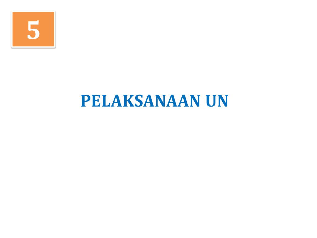Pelaksana UN • Pelaksana UN Tingkat PusatditetapkandengankeputusanMendikbud • Pelaksana UN Tingkat Provinsi ditetapkan denganKeputusan Gubernur. (Dinas Provinsi, Perguruan Tinggi, LPMP) • Pelaksana UN Tingkat Kabupaten/Kotaditetapkan denganKeputusan Bupati/Wali Kota. • Pelaksana UN Tingkat Satuan Pendidikan ditetapkan dengan Keputusan Kepala Dinas Pendidikan Kabupaten/Kota.