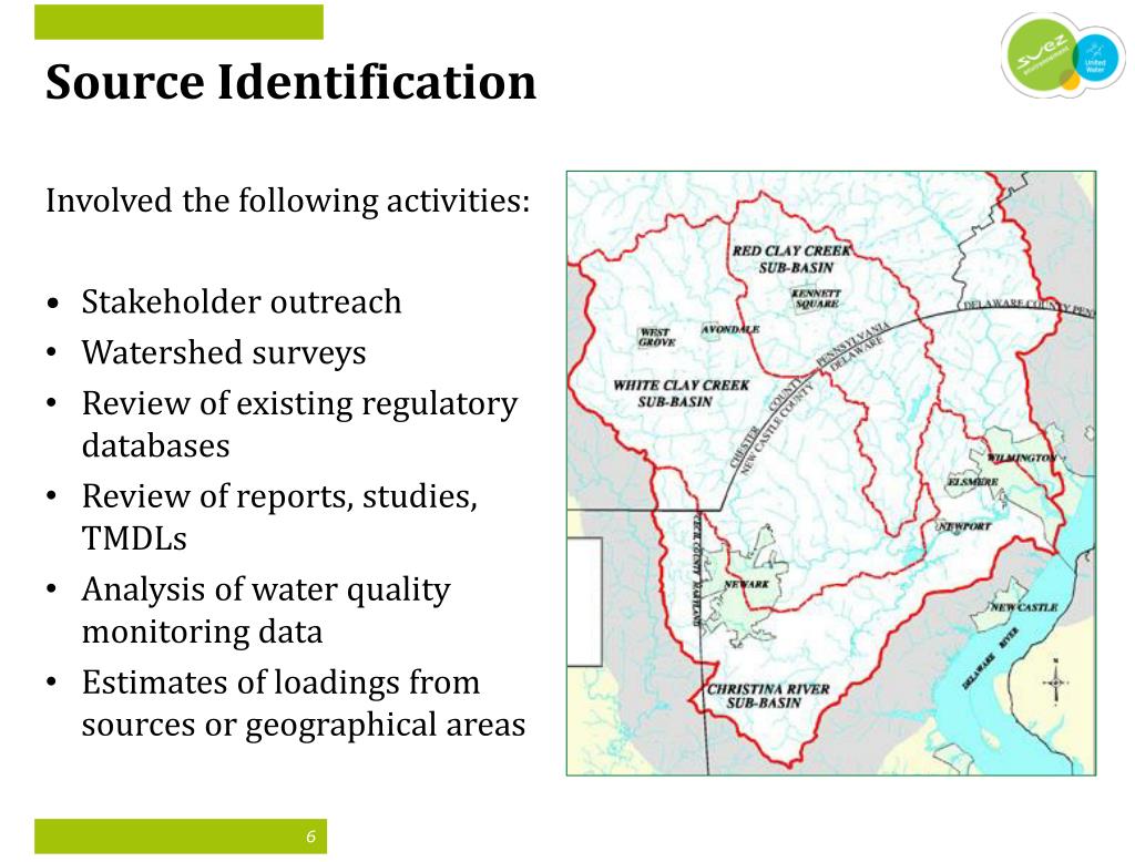 Source Identification Involved the following activities: • Stakeholder outreach • Watershed surveys • Review of existing regulatory databases • Review of reports, studies, TMDLs • Analysis of water quality monitoring data • Estimates of loadings from sources or geographical areas