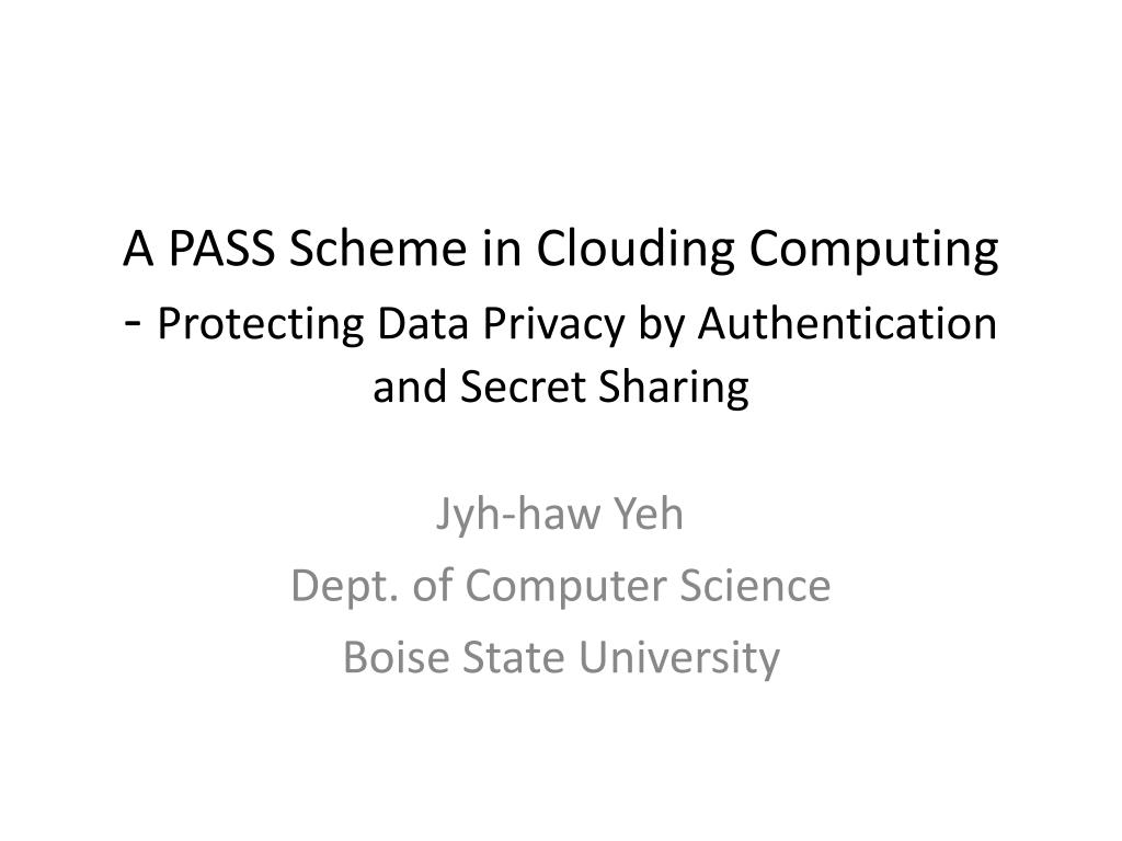 A PASS Scheme in Clouding Computing - Protecting Data Privacy by Authentication and Secret Sharing Jyh-haw Yeh Dept. of Computer Science Boise State University