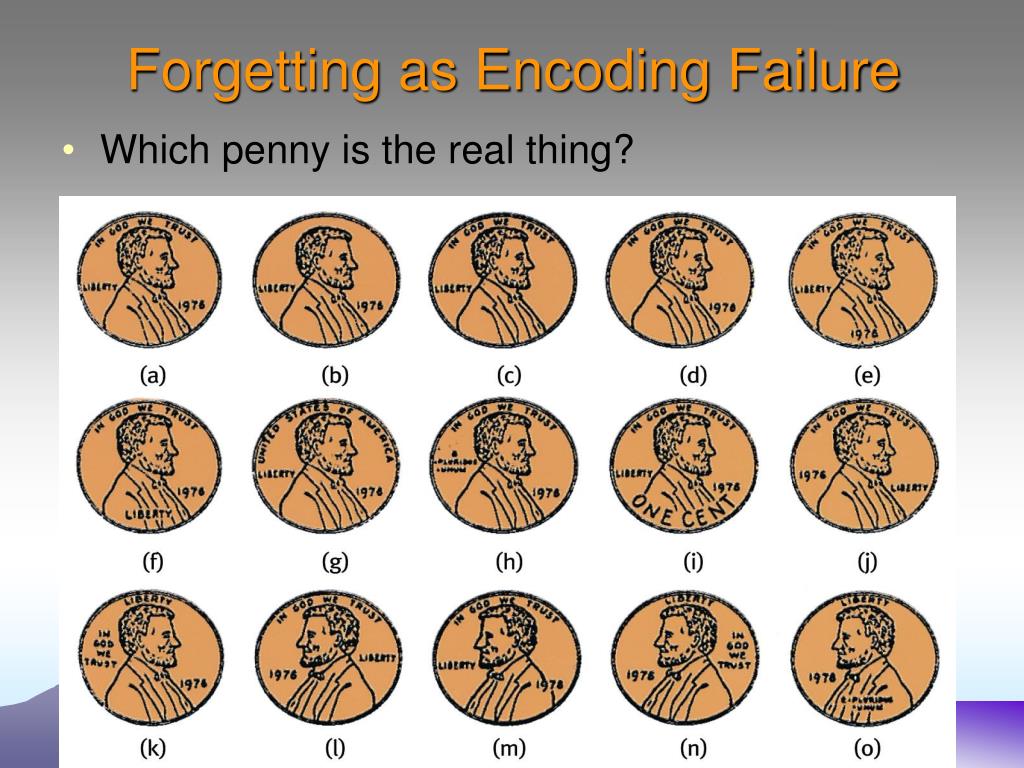Forgetting as Encoding Failure • Which penny is the real thing?