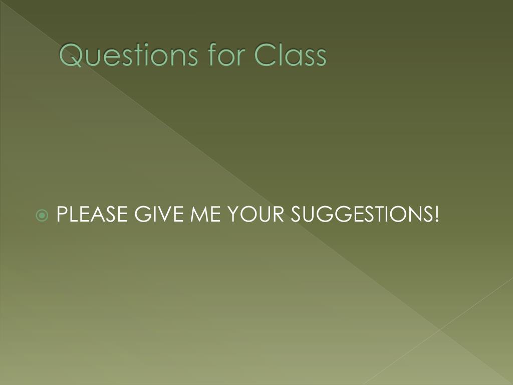Questions for Class • PLEASE GIVE ME YOUR SUGGESTIONS!