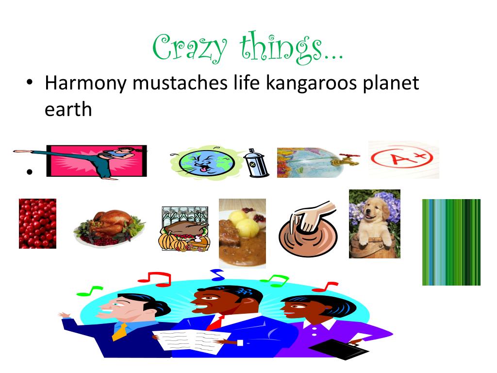 Crazy things… • Harmony mustaches life kangaroos planet earth