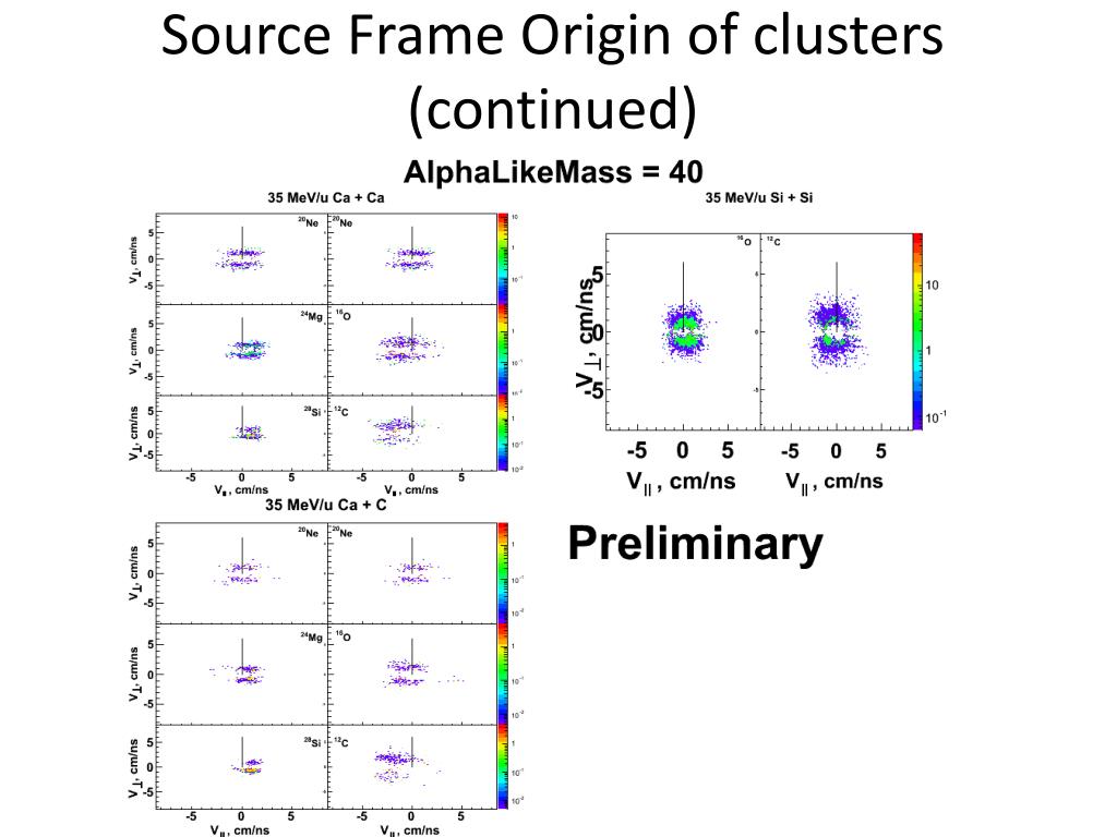 Origin of alpha conjugate clusters • Heavy partner is near beam velocity • alphas originate from neck emission