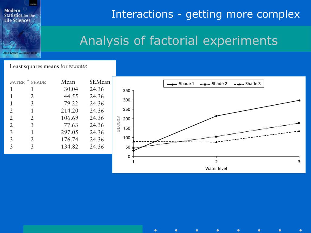Interactions - getting more complex Analysis of factorial experiments (Model)