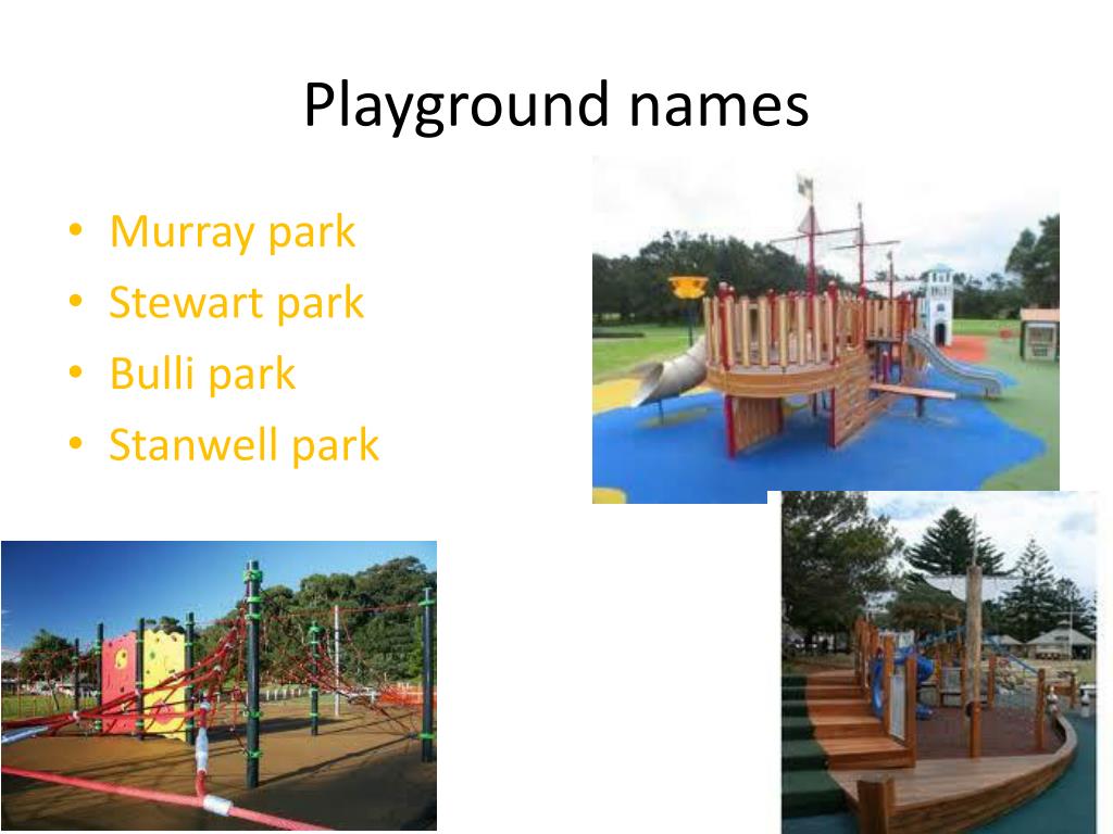 Playground names • Murray park • Stewart park • Bulli park • Stanwell park