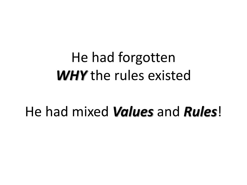 He had forgotten WHYthe rules existedHe had mixed Valuesand Rules!