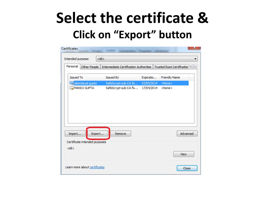 Close Internet Explorer >Locate certificate file at Desktopwith name given at sr. no.15