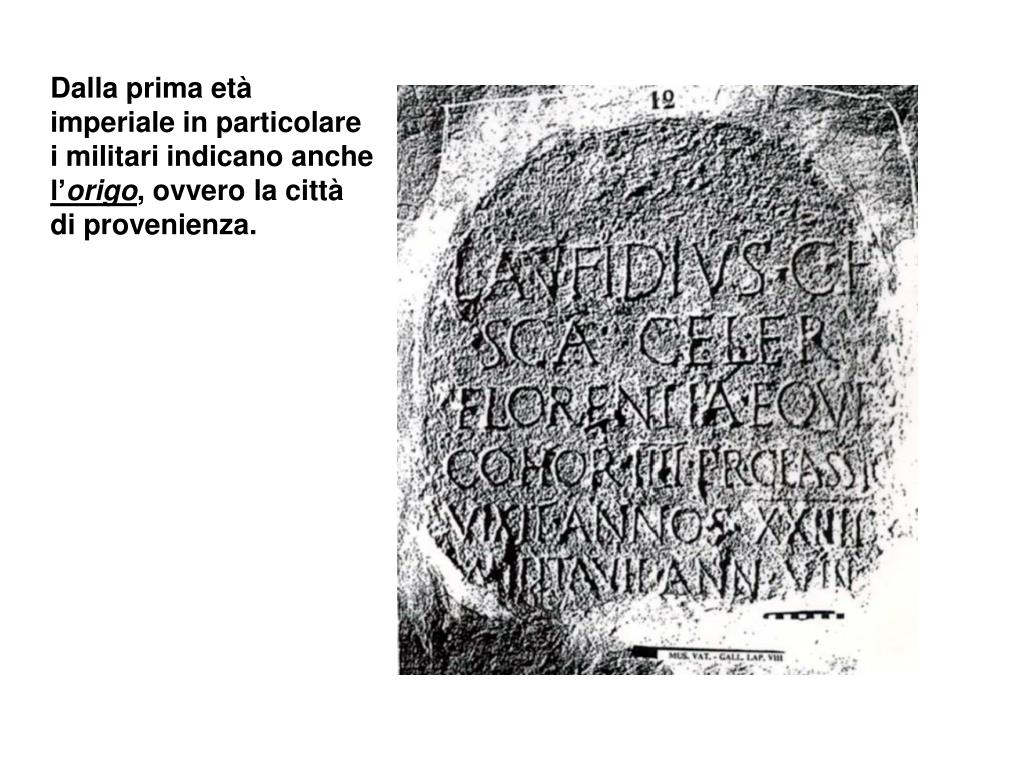 Dalla prima età imperiale in particolare i militari indicano anche l’origo, ovvero la città di provenienza.