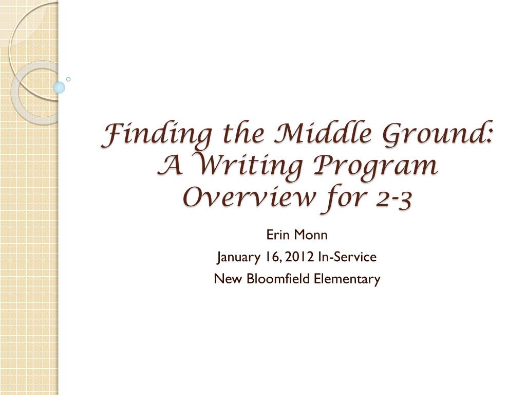 Finding the Middle Ground: A Writing Program Overview for 2-3 Erin Monn January 16, 2012 In-Service New Bloomfield Elementary