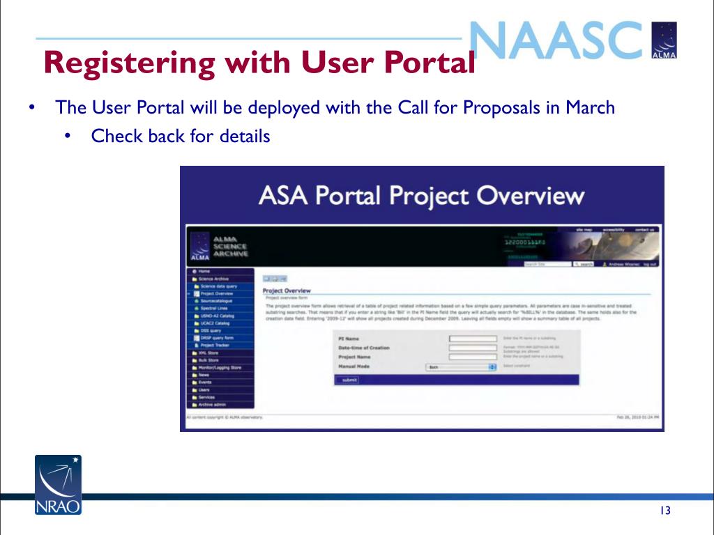 Registering with User Portal • The User Portal will be deployed with the Call for Proposals in March • Check back for details