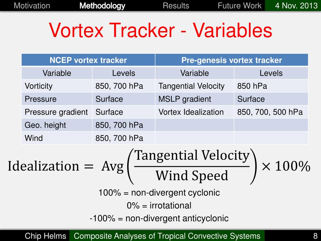 Methodology Vortex Tracker - Variables 100% = non-divergent cyclonic 0% = irrotational -100% = non-divergent anticyclonic