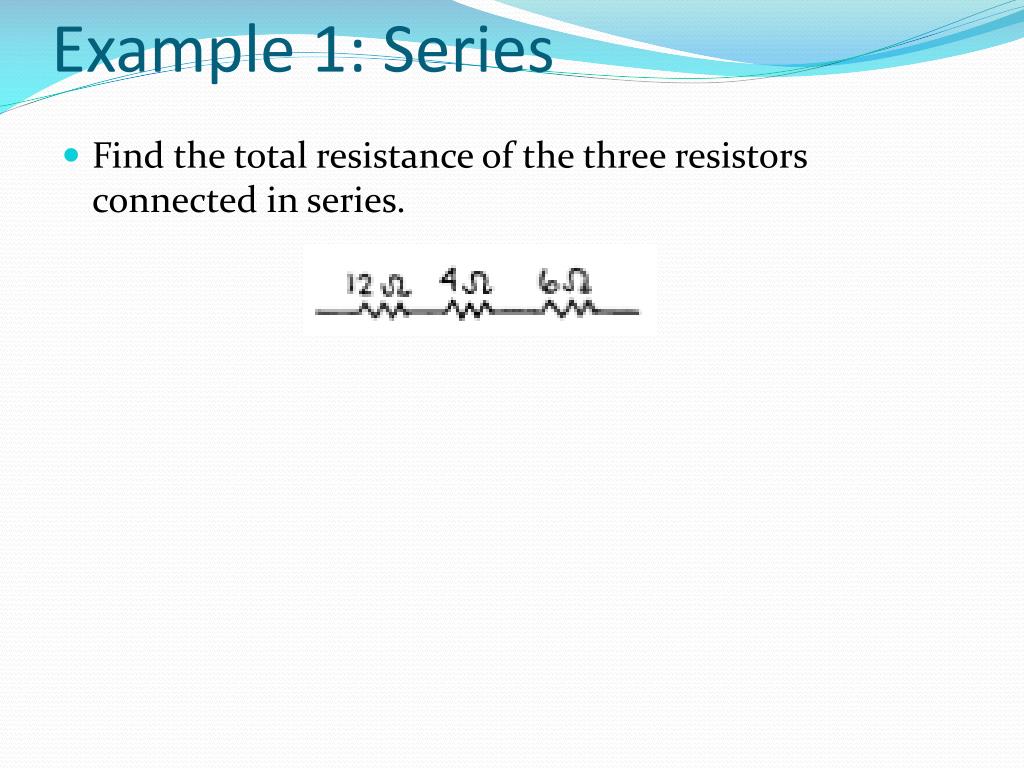 Example 1: Series • Find the total resistance of the three resistors connected in series.