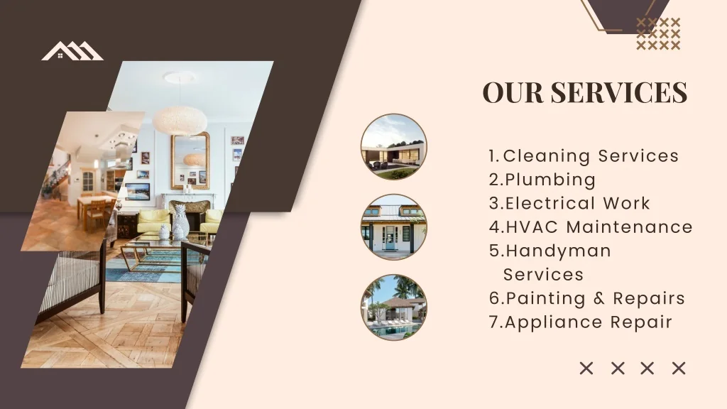 OUR SERVICES • Cleaning Services • Plumbing • Electrical Work • HVAC Maintenance • Handyman Services • Painting & Repairs • Appliance Repair