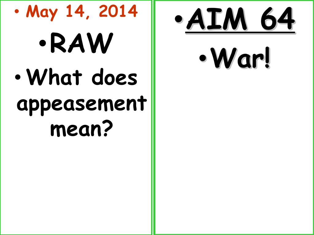 May 14, 2014 RAW What does appeasement mean? AIM 64 War!