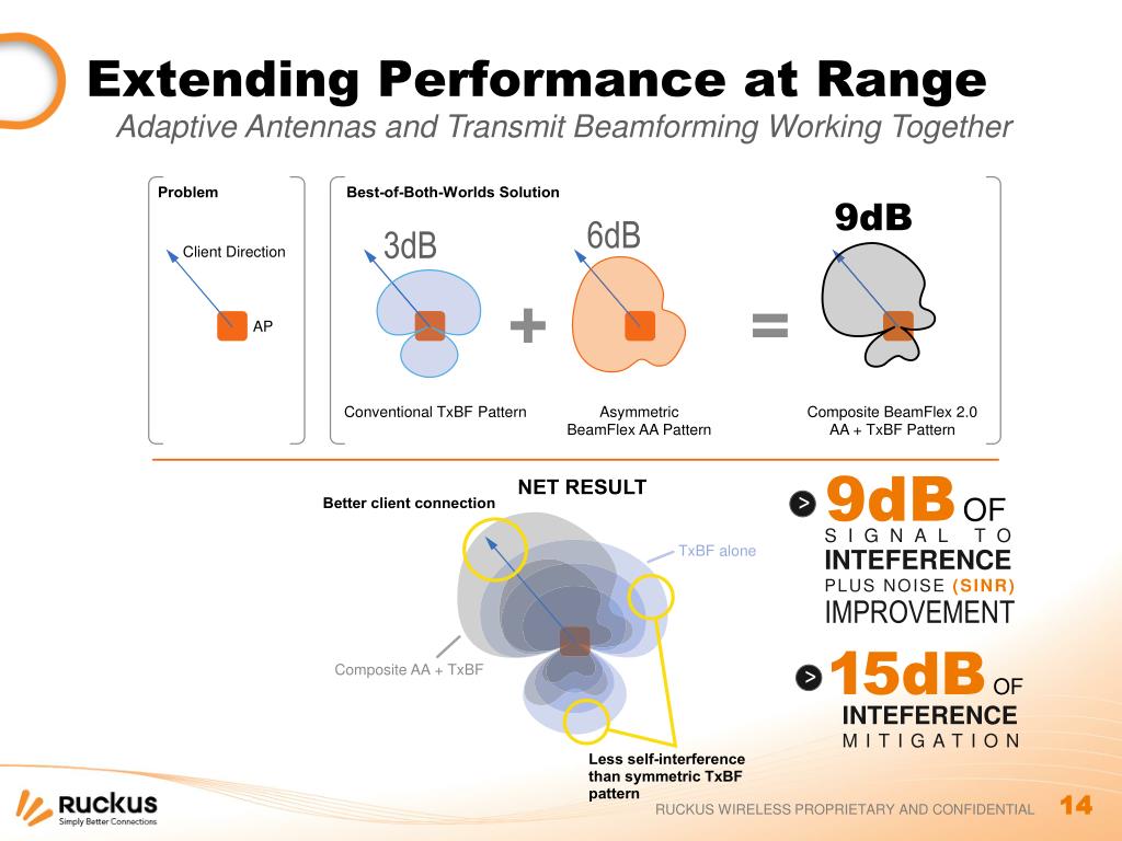 Adaptive Polarization Diversity 5x Device orientation accounts for up to 5x performance differential among products • Better reception (PD-MRC) forweak and hard to “hear” devices • Better transmission to devices constantly changing their orientation HORIZONTAL POLARIZATION VERTICAL POLARIZATION