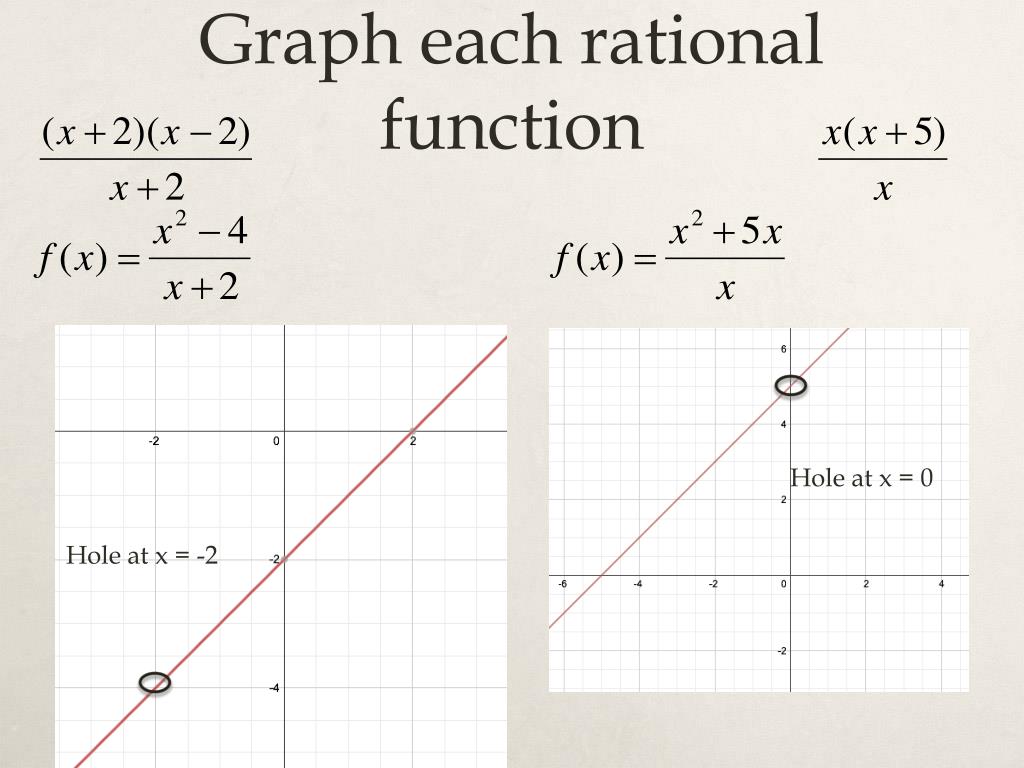Graph each rational function Hole at x = 0 Hole at x = -2